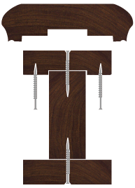 3. Place the Large Rail Cap over the Subrail. Screw the Large Rail to the Subrail from the bottom.