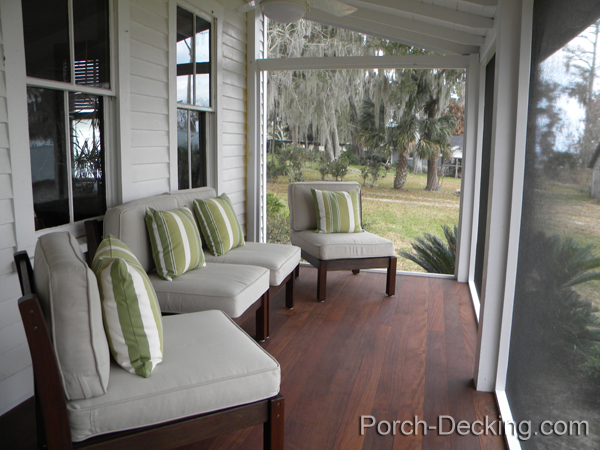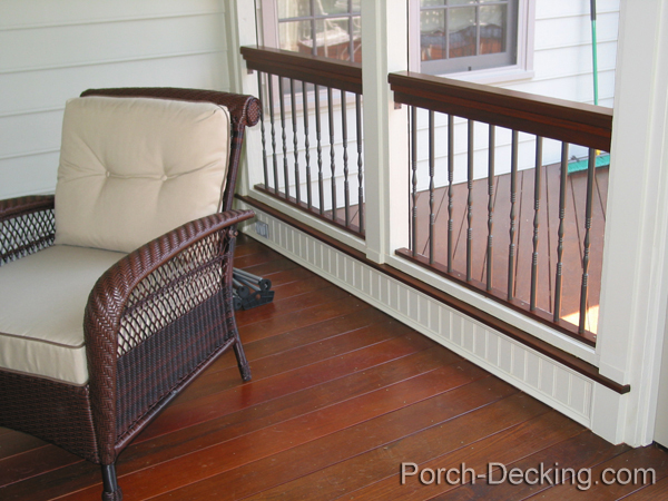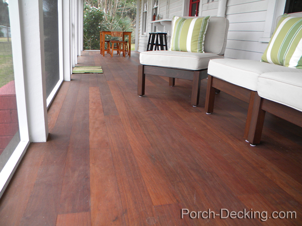 Design your porch with a pitch so that moisture can drain off, and remember that T&G porch decking is only suitable for covered areas.